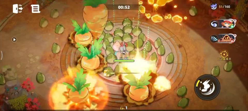 进场时,召唤12个大萝卜下砸,造成攻击力250%的伤害,持续2秒,萝卜爆炸并造成250%的额外伤害。