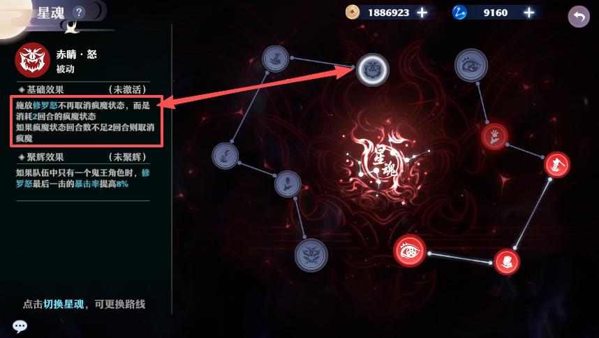星魂选择:核心解锁【魔瞳・邪】【魔瞳・刹】,前者积累【百鬼夜行】叠加物理伤害结果,后者强化技能对主目标的针对性伤害与目标选择逻辑。