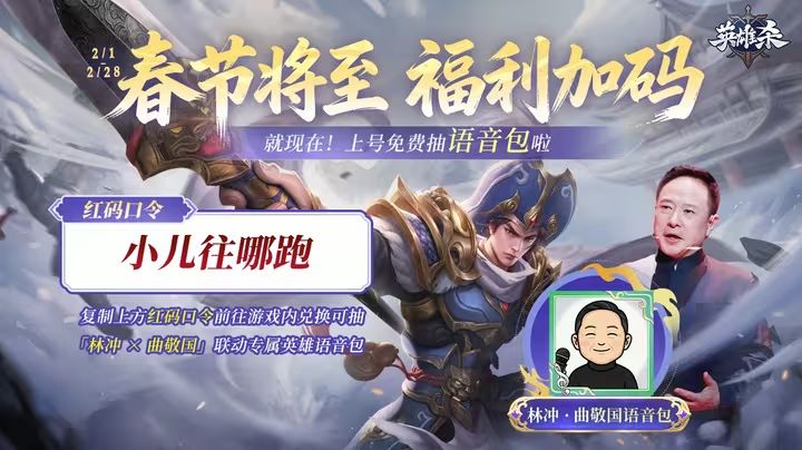 小师妹来送今天的英雄杀林冲与知名配音演员曲敬国福利 —「林冲×曲敬国联动」语音包啦~