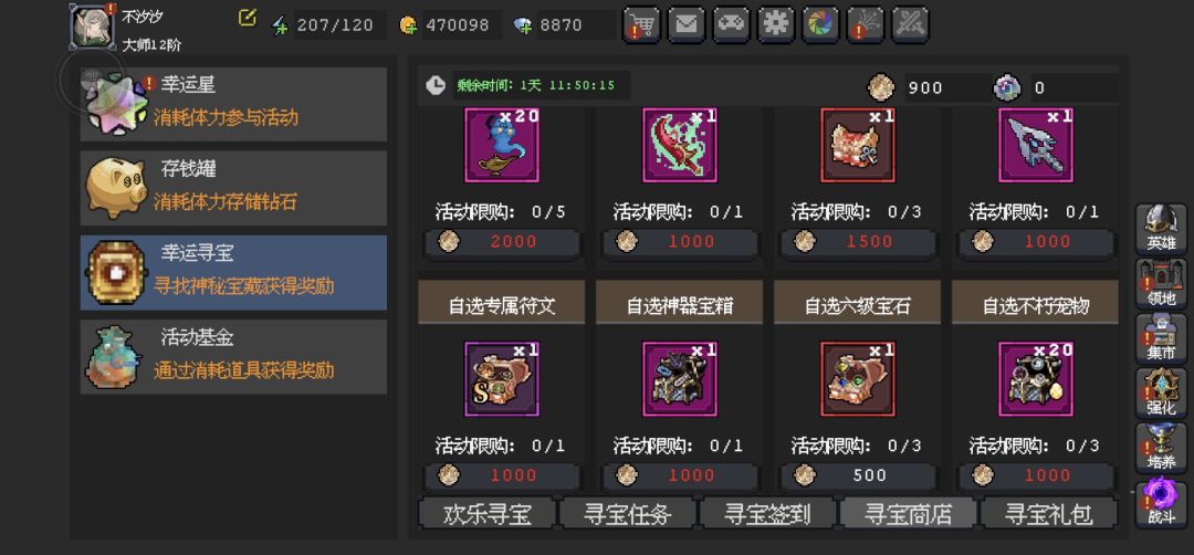 如题,零氪二十二天萌新火岚,啥神器旗帜宠物都没有,明天应该能到1000玉,换啥提升比较大,目前血缘9都打不过,该咋提升