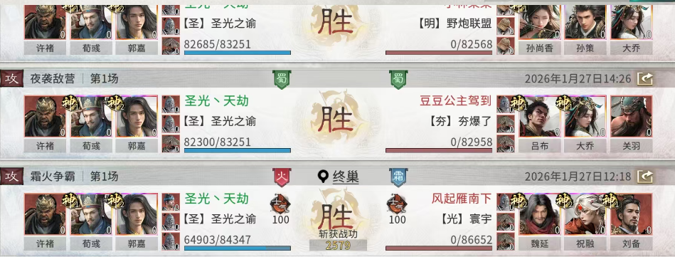 上周介绍了许褚、周泰、蔡文姬的阵容,今天带来它的爆发加强版。加强版由郭嘉、许褚、许褚组成的阵容——王佐血战队,因郭嘉的加入,使许褚能连续释放两次主动技能,从而无视荀彧的清除效果,“血战”状态得以保留。其爆发上限更高,常可一回合秒杀敌方主C。