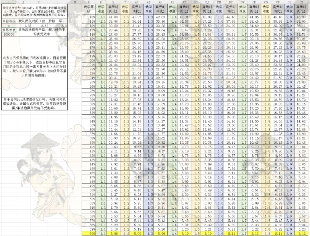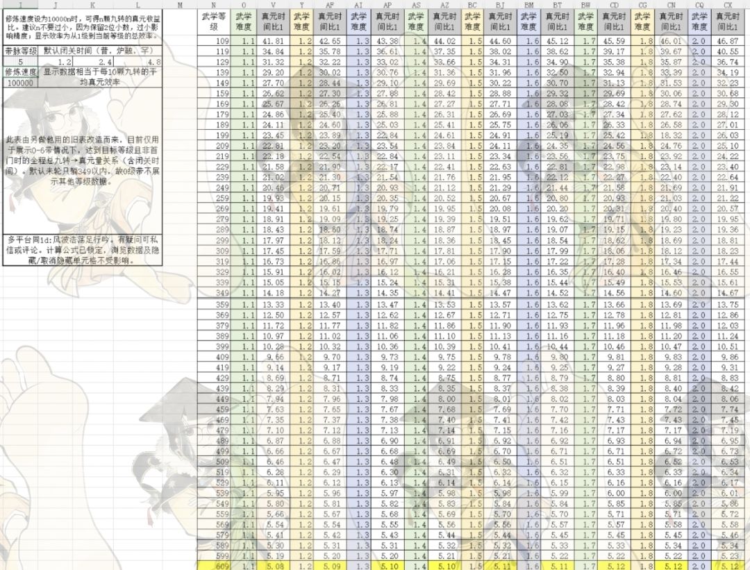 是用之前做的表改的,做表动机见p7,v2.0预告(每10级计算一次当前10级效率)见p8。