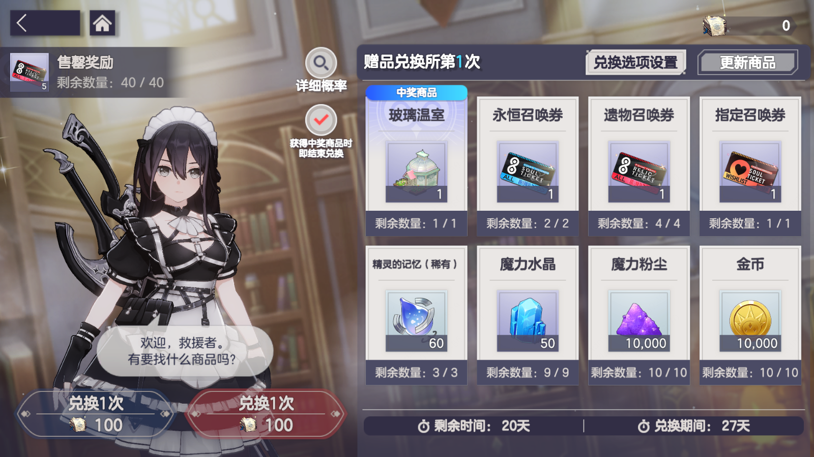 - 核心奖励:【永恒石】*2700、【瑞贝卡女仆时装】*1、【洁克琳女仆时装】*1、【瑞贝卡】*2、【洁克琳】*2、【永恒召唤券】*26、【遗物召唤券】*10、【指定召唤券】*5