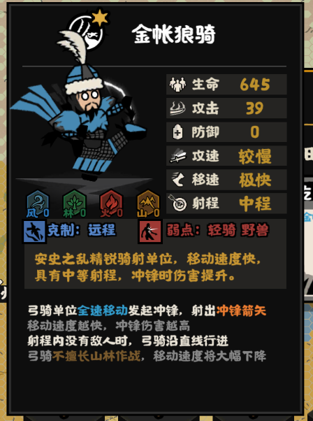 【回马箭】:轻骑、弓骑撤退,一段时间后在目标地点造成伤害