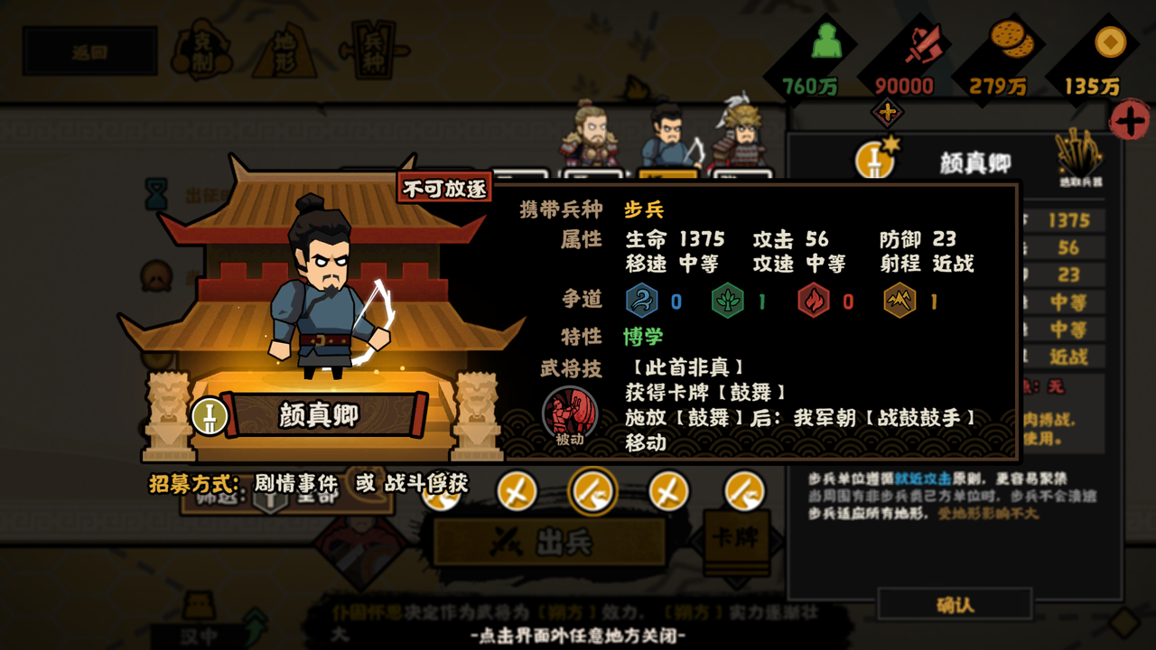 2、【天宝万载】:可在剧情事件中招募颜真卿、哥舒翰,武将张巡可上阵。初始属国林立,大燕和安东发动内战;