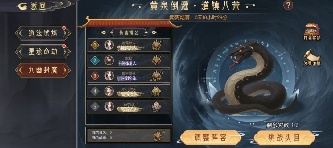 【高配展示】九幽试炼之灰蛇怪高配阵容分享