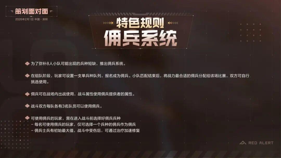 8V8玩法预计3月完成线上启动先锋测试,新玩法为小队玩法机制,有佣兵系统以及悬赏分机制。