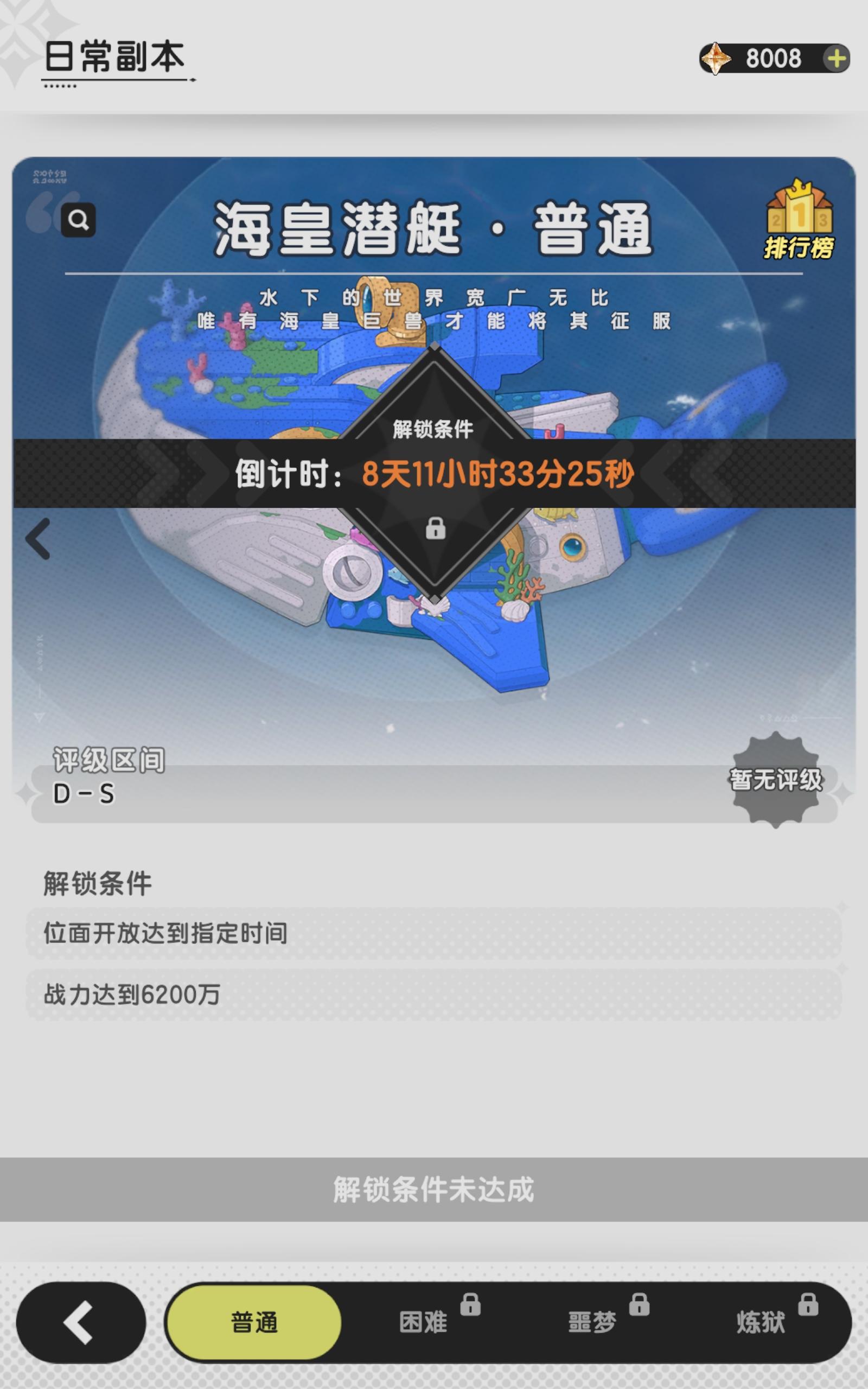 第二,新本打完困难,5件都穿上,战力还达不到噩梦的要求,能抽的基本都抽了。再看下一个本,普通就要6200。如果打不了噩梦,战力基本也就这样了,算上升级,可能能到5700?这就陷入了死循环,没到战力要求,打不了,打不了就得不到更高得装备,战力就一直达不到要求。除非氪金去交易所买,但是一件红色的要好几百R。