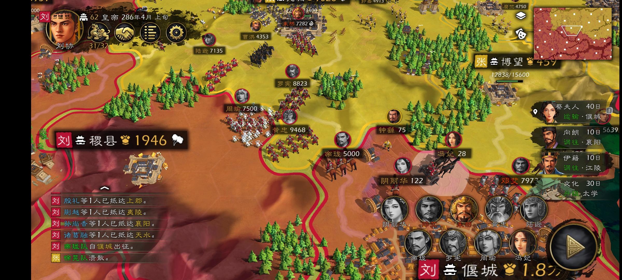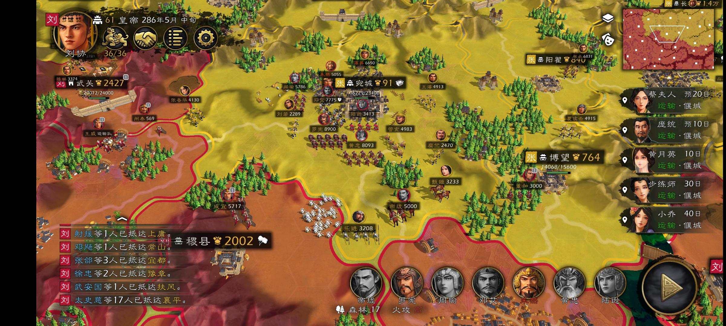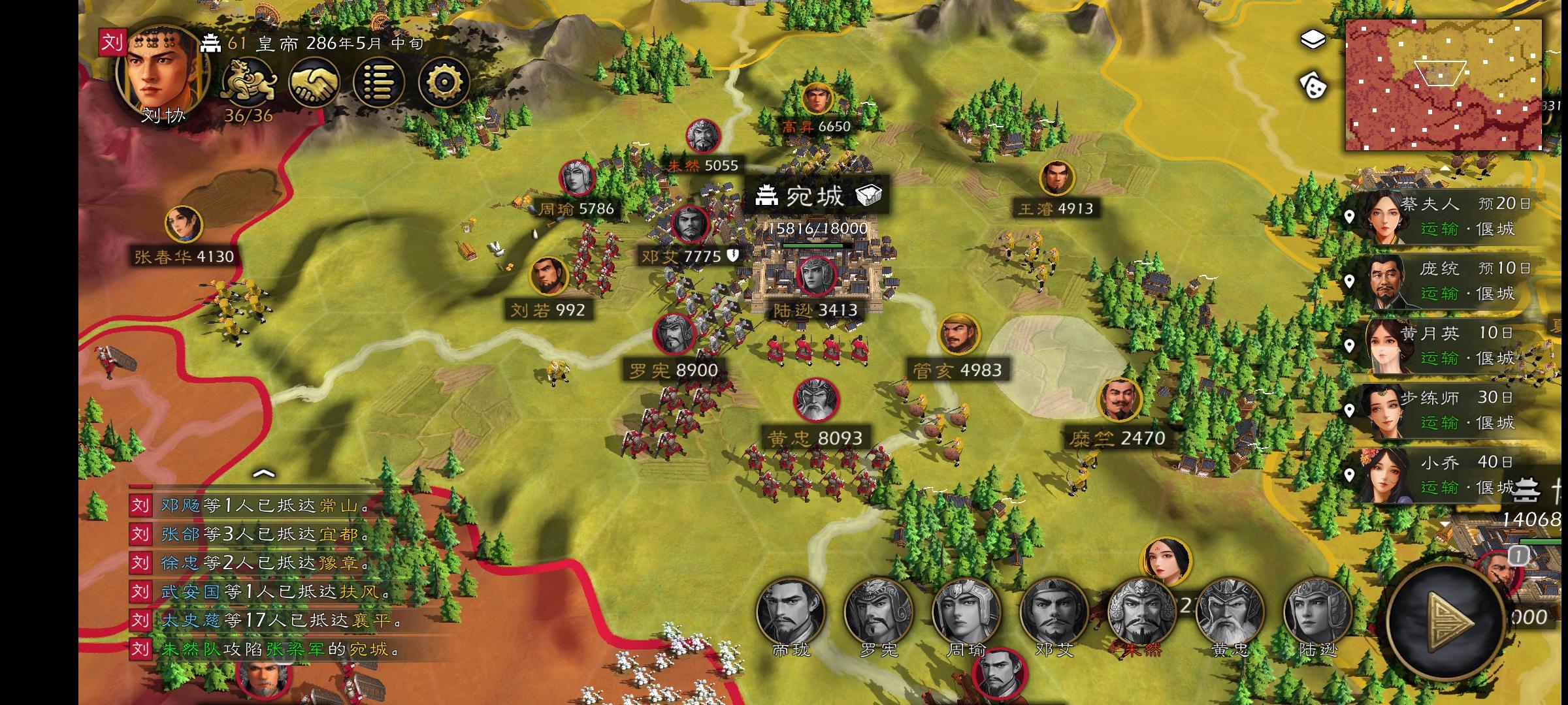 前期不断的攻防,中期渐渐的占领优势,后期终于抵进了宛城附近,不过这次真的是好啊,后方三郡源源不断的物资支援外加两位辅助官《特殊的两位》。