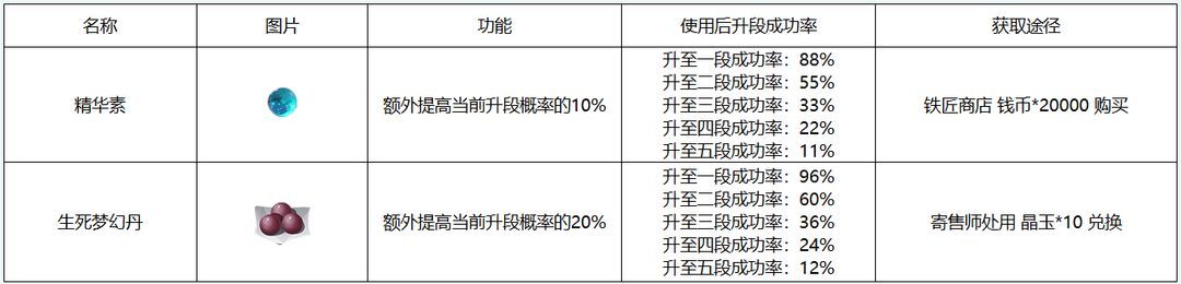 6、若添加稳定装备时,升段成功后,主装备和稳定装备都保留。升段失败,稳定装备损坏消失,主装备保留。