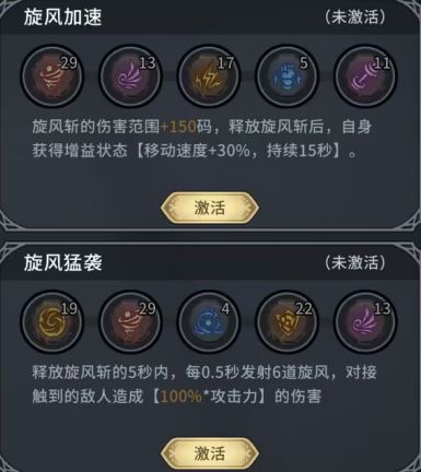 剑影守护契合拥有召唤奇物的玩家,旋风加速能提高跑图和推图体验,旋风猛袭则是进一步增加旋风斩附带的输出能力,还能增加各天赋的触发频率。