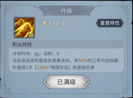 通过暴击造成伤害后减少其他技能CD以完成伤害不间断循环