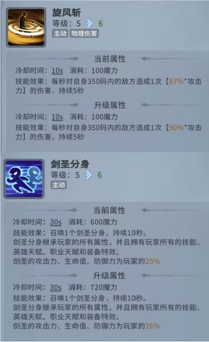 核心技能就两个,旋风斩以及剑圣分身。可以只带一个旋风斩,不带其他技能,这样更容易永续旋风斩,伤害也不会断,提高输出稳定性。