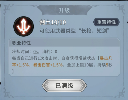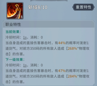 至此,剑圣的天赋就选择完成了,输出逻辑也十分简单,通过不断得到堆高暴击率,最终达到技能无限自循环就算成功了。