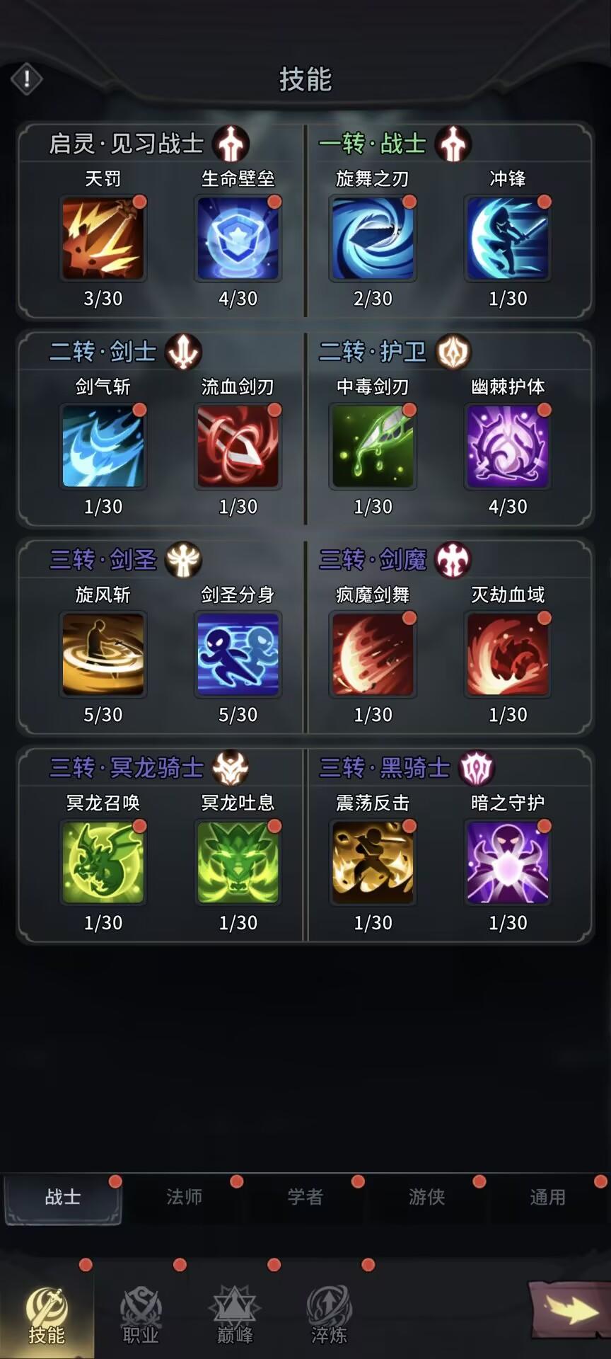 0转(启灵)-1转(战士)-2转(剑士/护卫)