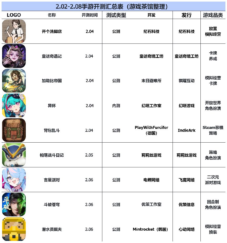 游戏茶馆整理了下一周(2.02-2.08)内即将上线的新游戏。