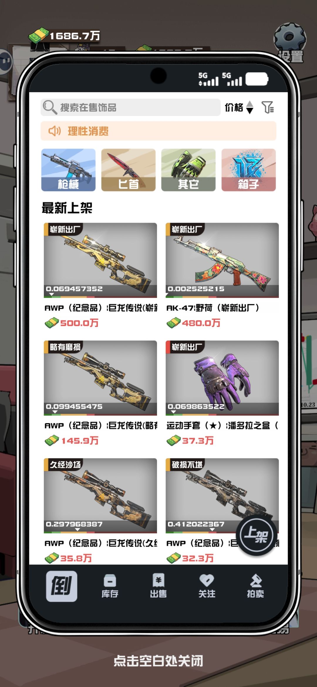 具体操作如下,开局可以开几个箱子(看一个广告可以多给十个箱子),得到的商品作为启动资金,直接把价格高的价格加到百分之两百上架然后进入下一周