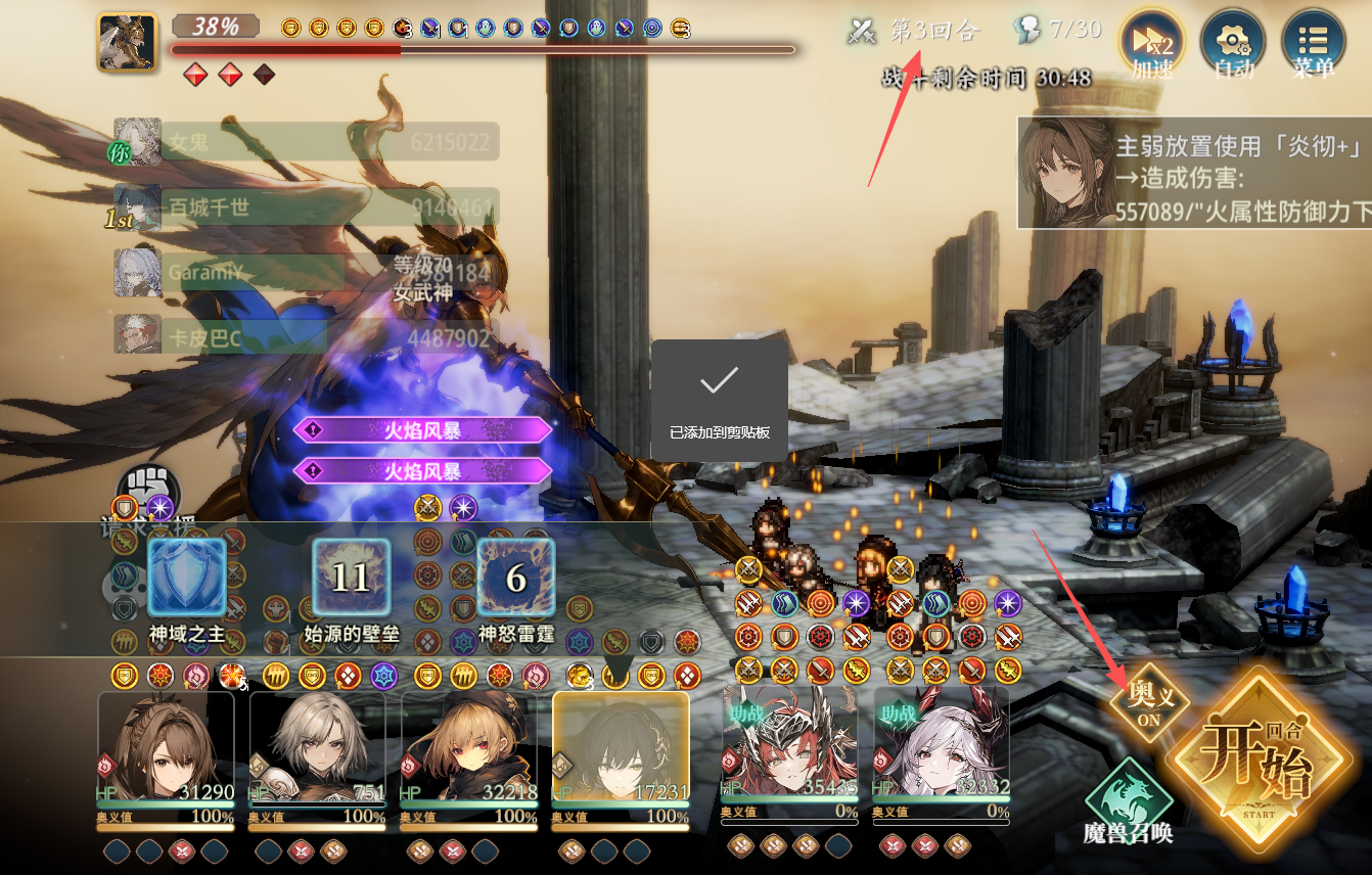 1.会因为释放无敌跳过回合,但是瓦尔基里会活下来,并且奥义充能满