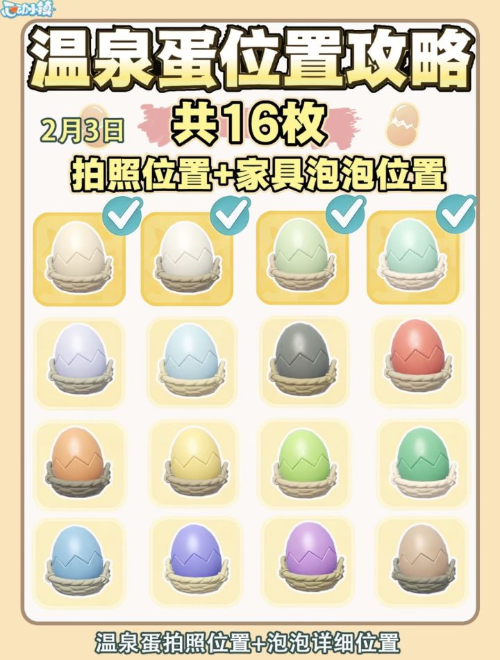 【心动小镇】2月3日温泉蛋攻略来了(16枚)别再白跑了