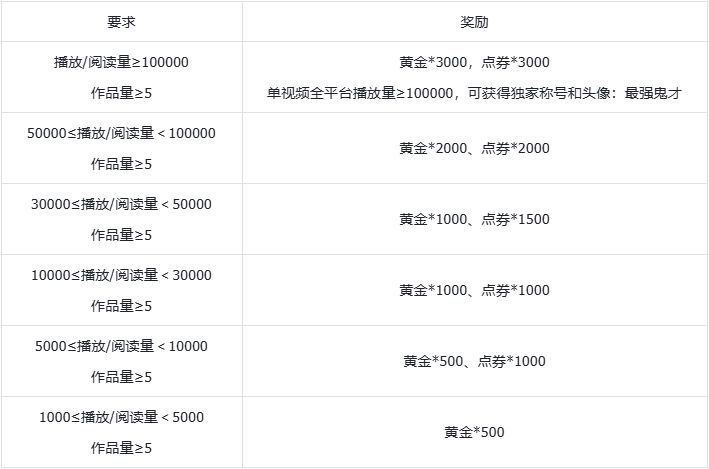 UGC方向阶梯式奖励表