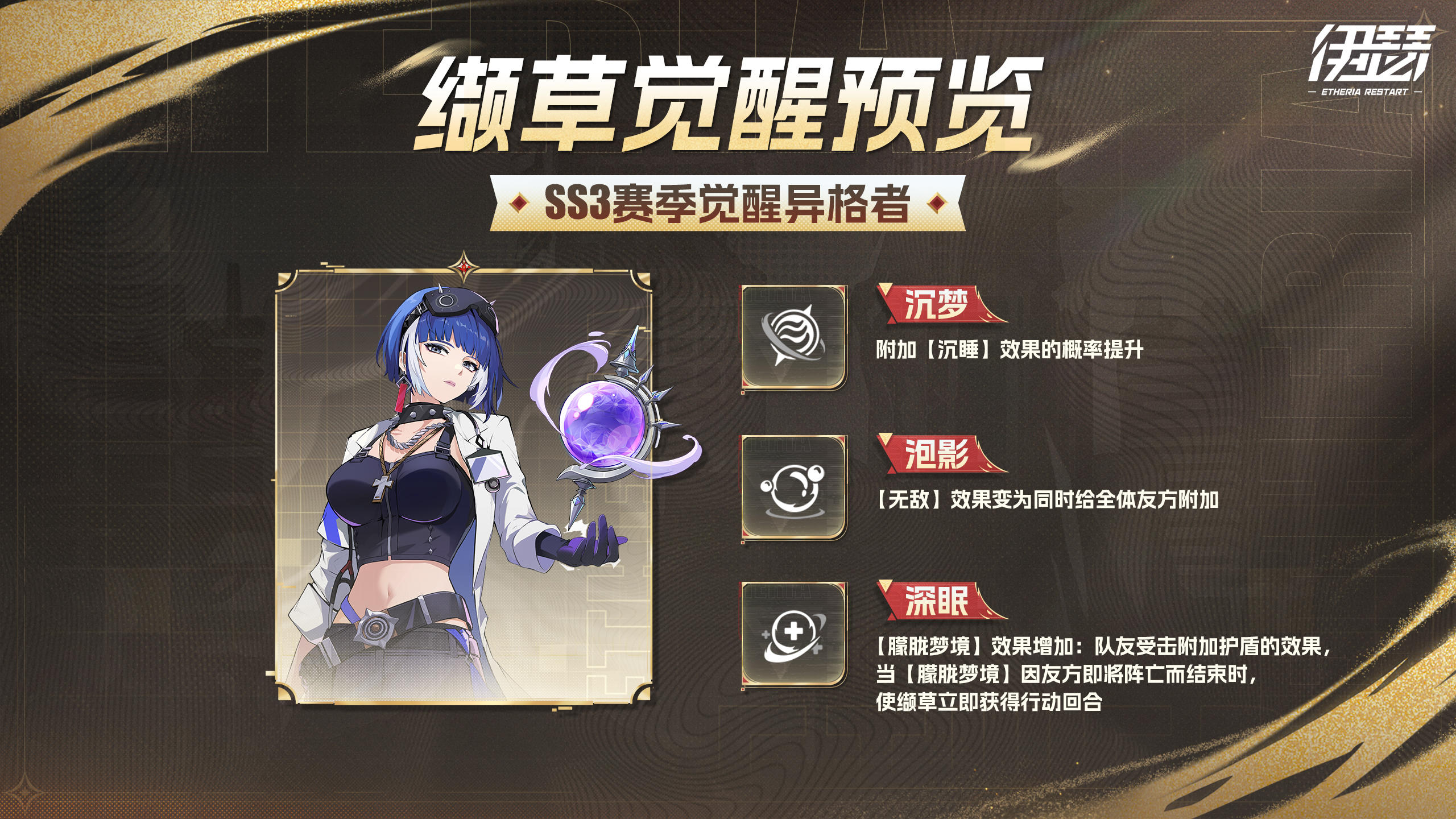 「源格觉醒-缬草」活动即将开启。将缬草的所有技能升至满级,即可解锁源格觉醒强化!挑战觉醒试炼获得觉醒晶源,升级觉醒强化点提升属性,完全觉醒更可以解锁强大的技能效果。