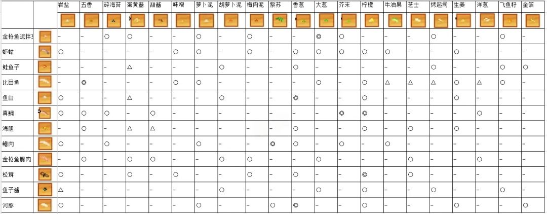 海鲜寿司物语相性表(全)
