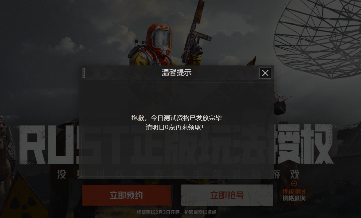 Rust今日10点开放测试!本次测试为大规模测试,只需要抢号即可获得资格!大家不知道怎么下载,如何抢注的跟我来操作!