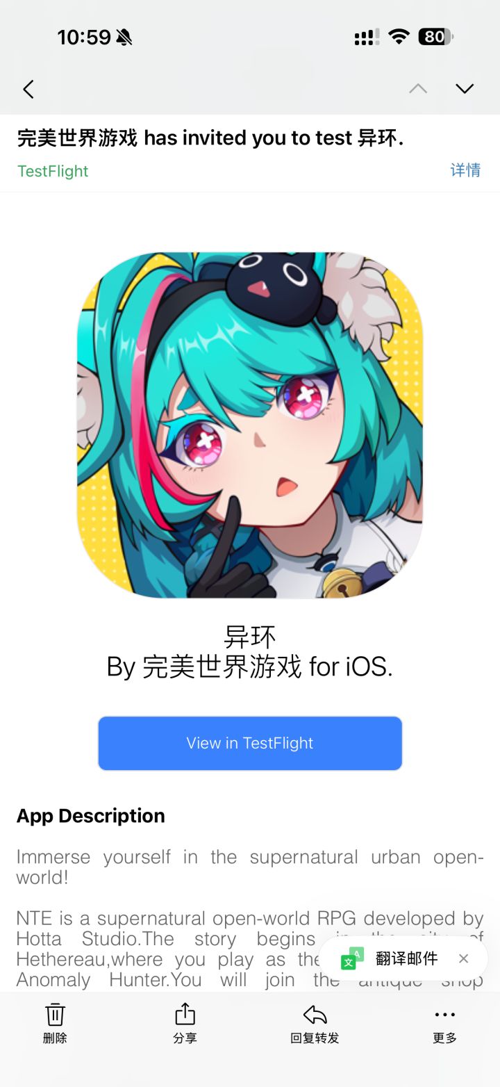 从TapTap点体验进入,显示此beta已满。找到邮箱里的测试资格邮件,点蓝色view in TestFlight ,会有一个弹窗。第一条要求在AppStore 下载testflight ,第三条有一个加粗的邀请码。