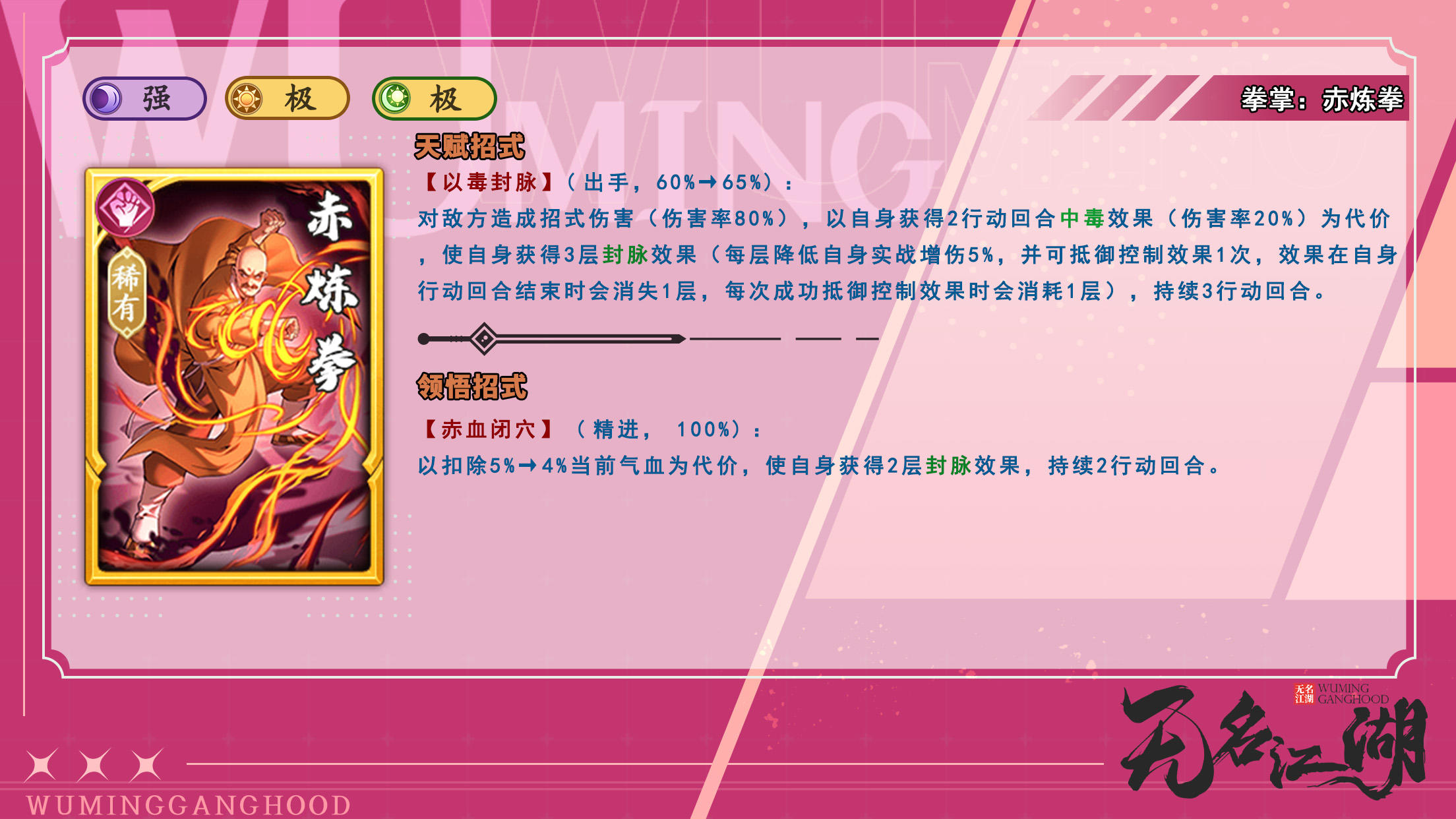 稀有拳掌【赤炼拳】武学效果: