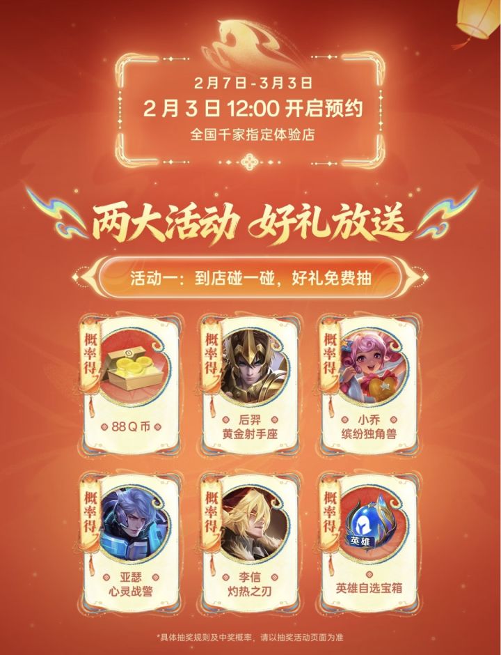 打开手机NFC,找到店里的王者专属立牌,轻轻一碰——直接跳转抽奖页面!后羿黄金射手座、小乔缤纷独角兽、88Q币、英雄皮肤宝箱…全是实打实的好东西,就看你是不是那个天选欧皇。