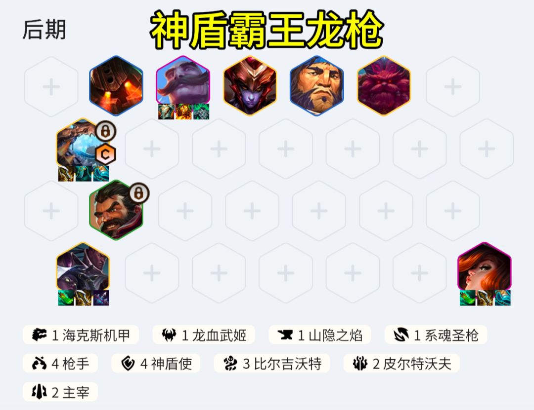女枪:青龙刀+无尽+破防,后面拆给两星赛娜布隆:板甲+振奋+日炎