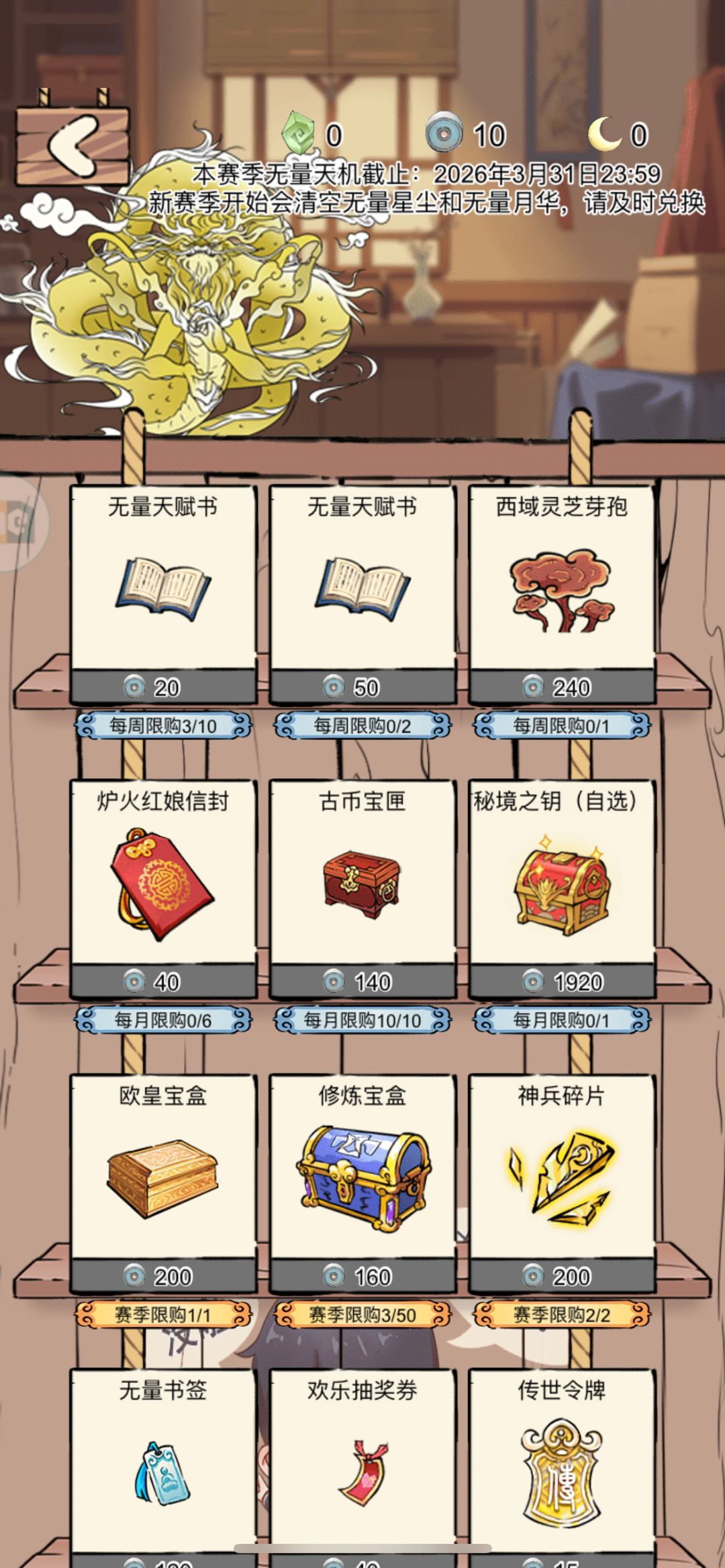 10金条100个只能用三四天 我们可以手撕10层boss就打到二十层以此类推 (注意后面要到四十层才可以扫荡三十)