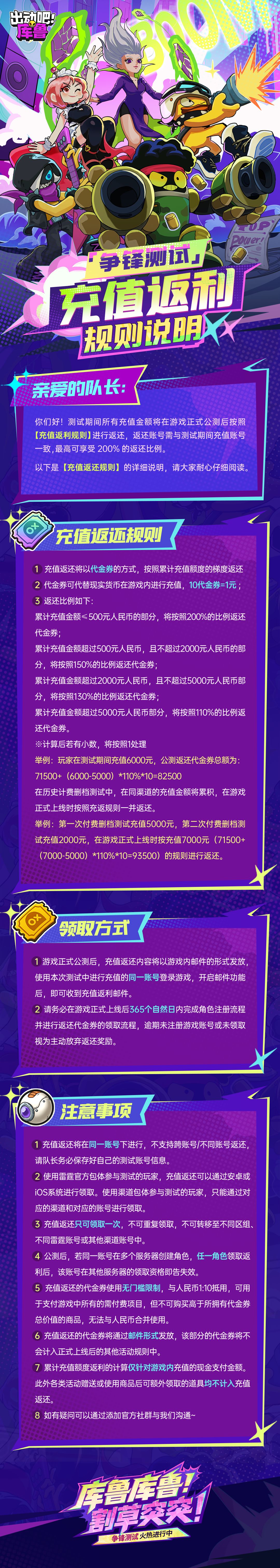 1. 充值返还将在同一账号下进行,不支持跨账号/不同账号返还,请队长务必保存好自己的测试账号信息。