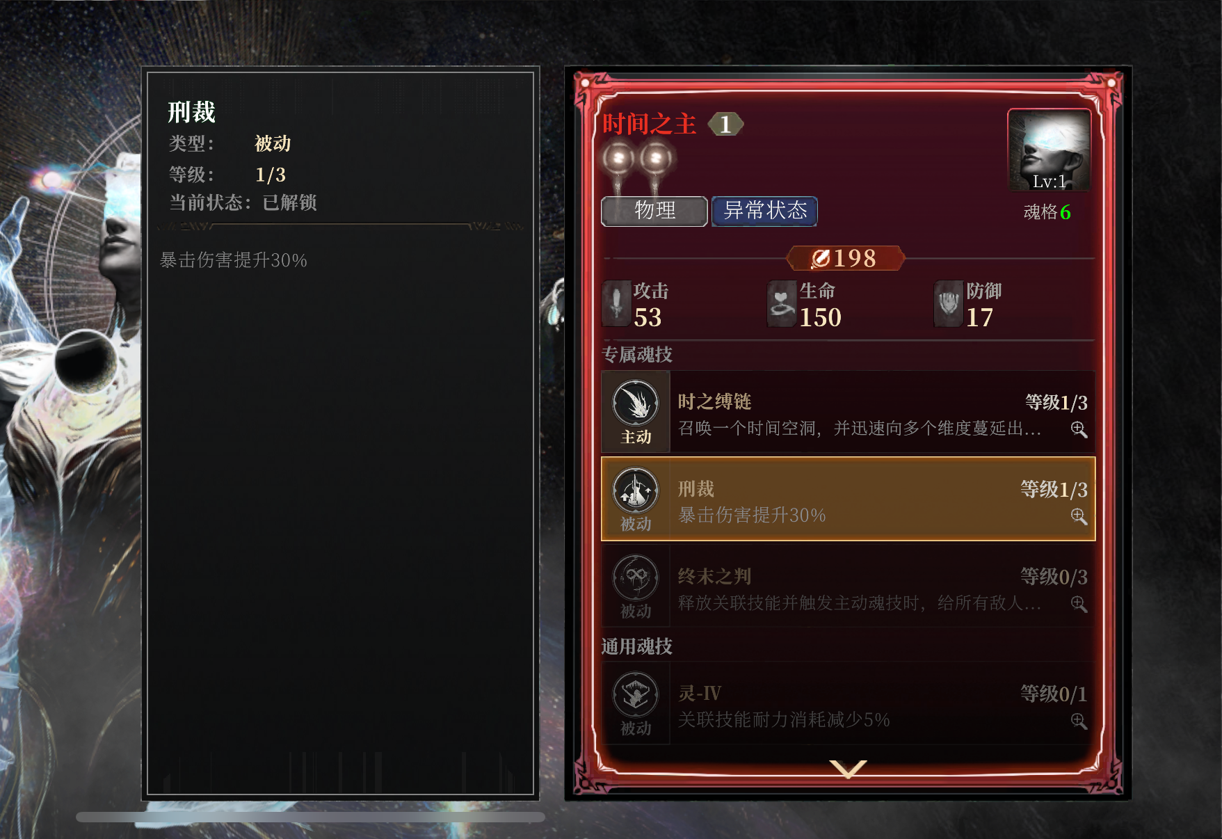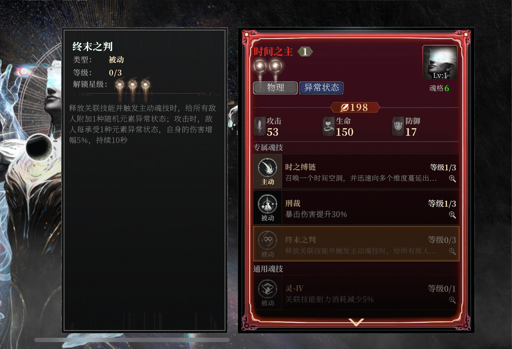 释放关联技能并触发主动魂技时,给所有敌人附加1种随机元素异常状态;攻击时,敌人每承受1种元素异常状态,自身的伤害提升,持续10秒。