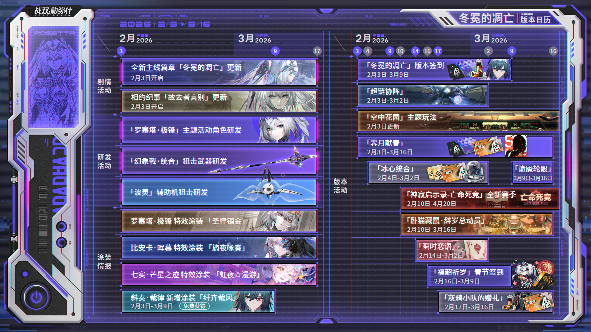 2月3日「冬冕的凋亡」版本现已开启:在「超链协阵」中,配合作战;于「卧猫藏鼠」中,发挥极致身法;再次来到「空中花园」,这里又有哪些新变化……