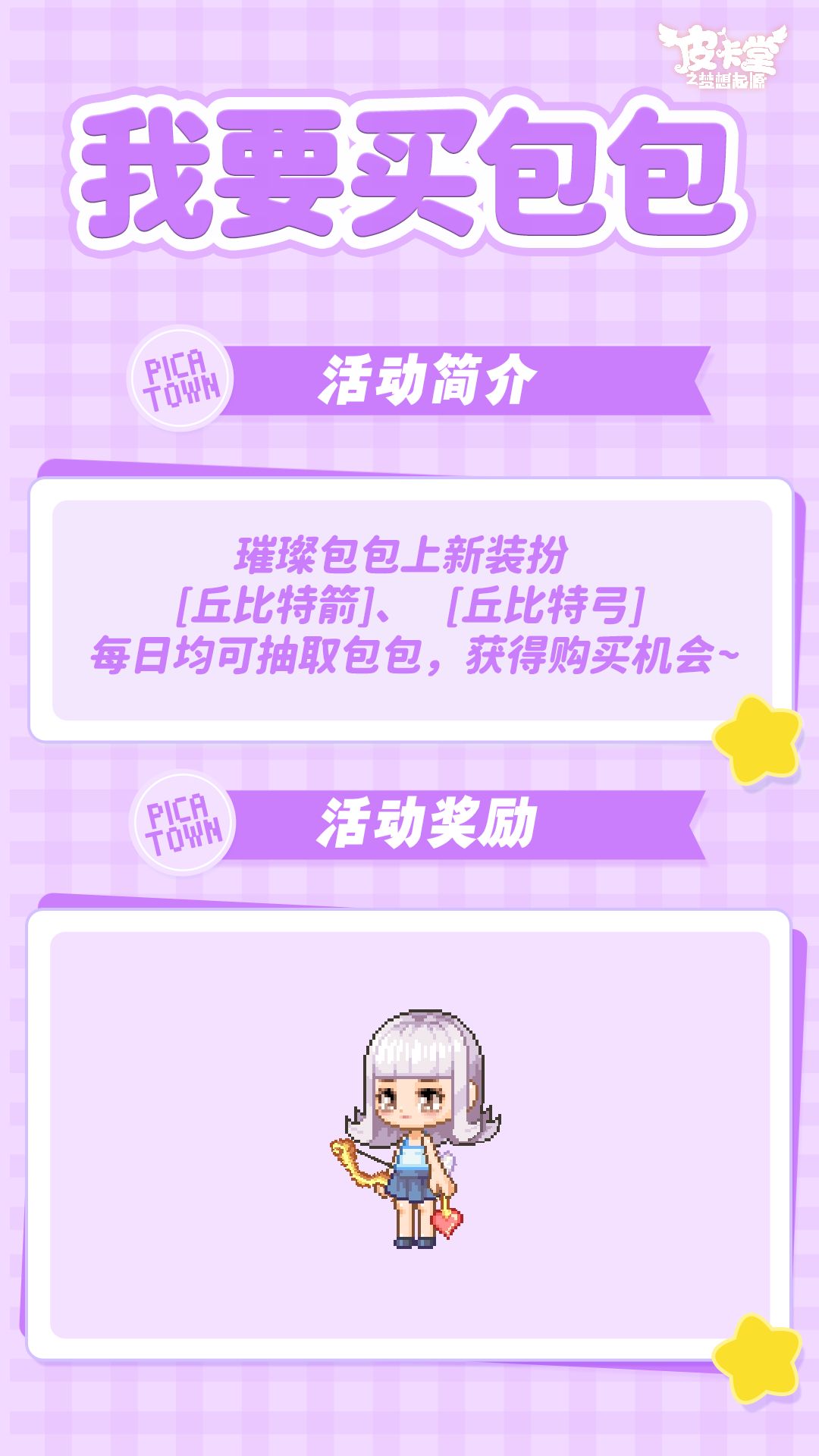 -【我要买包包】璀璨包包上新装扮[丘比特弓]、[丘比特箭]!每日均可抽取包包,获得购买机会~