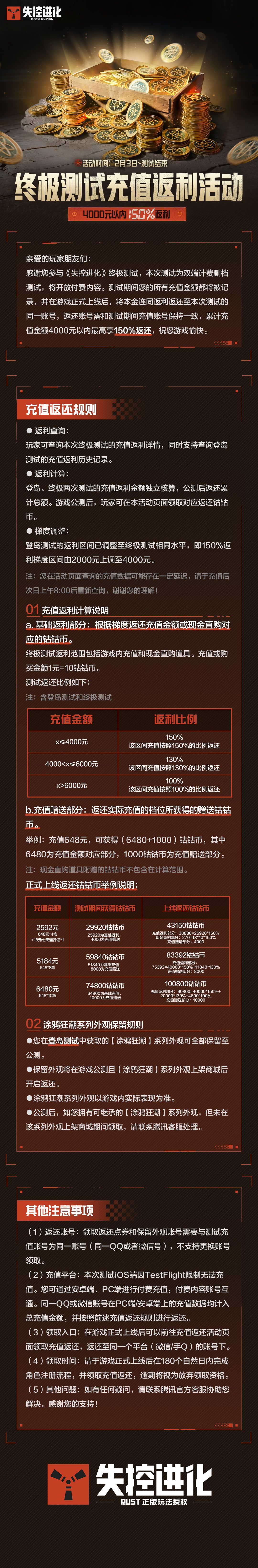 《失控进化》终极测试充值返还规则说明
