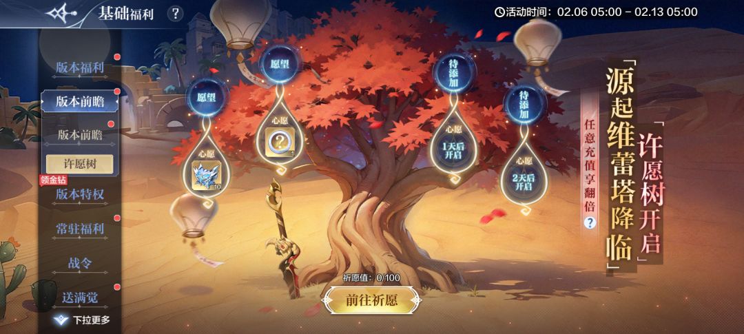 二、【许愿树】维蕾塔源起归来,许愿领好礼