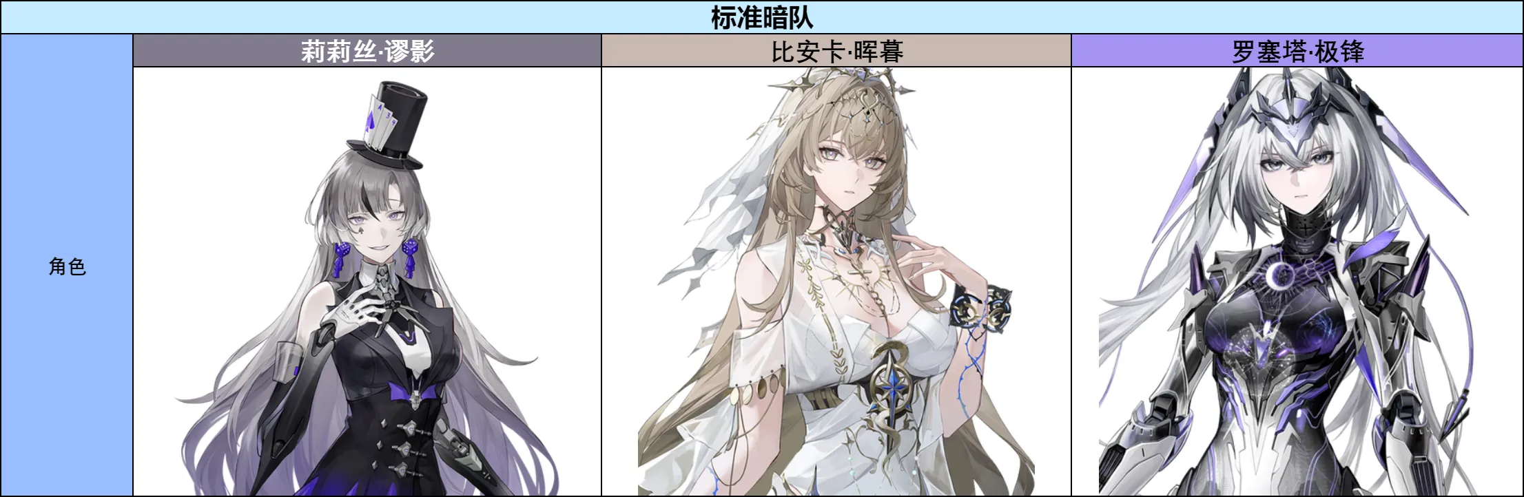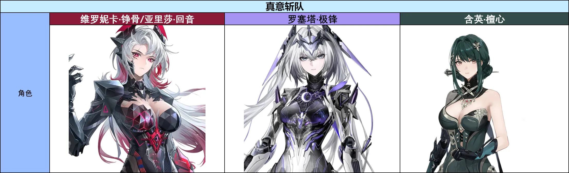 罗塞塔·极锋,暗属性破甲型,效应为真意斩。破甲型作为新职业,是装甲型的升级版,可以在全队触发超算空间时,提供更高的额外伤害减免降低效果。极锋的出现,意味着暗队的劳模卡列尼娜·辉晓终于可以休息了~ 同时,极锋自身的输出能力较高,在暗队与真意斩效应队伍中均可作为主力输出使用。