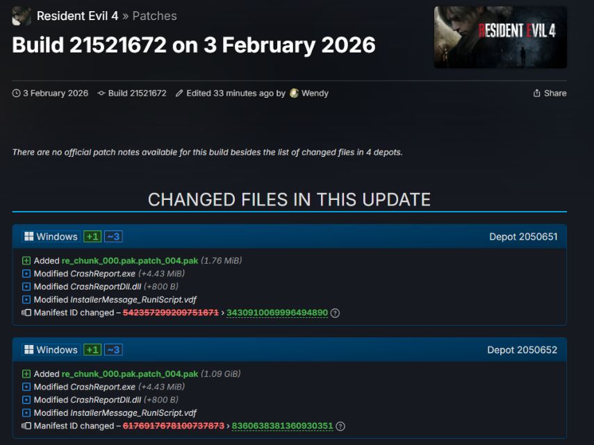 此次移除D加密后,游戏的 EXE 执行文件容量直接缩减422MB,大幅优化了安装体验,也解决了D加密可能带来的性能占用问题。卡普空选择此时移除加密的操作引发业内热议,结合系列新作的推出节点,业内人士普遍推测,官方此举意在吸引《生化危机》系列粉丝的关注,为即将上线的《生化危机9:安魂曲》提前预热造势。