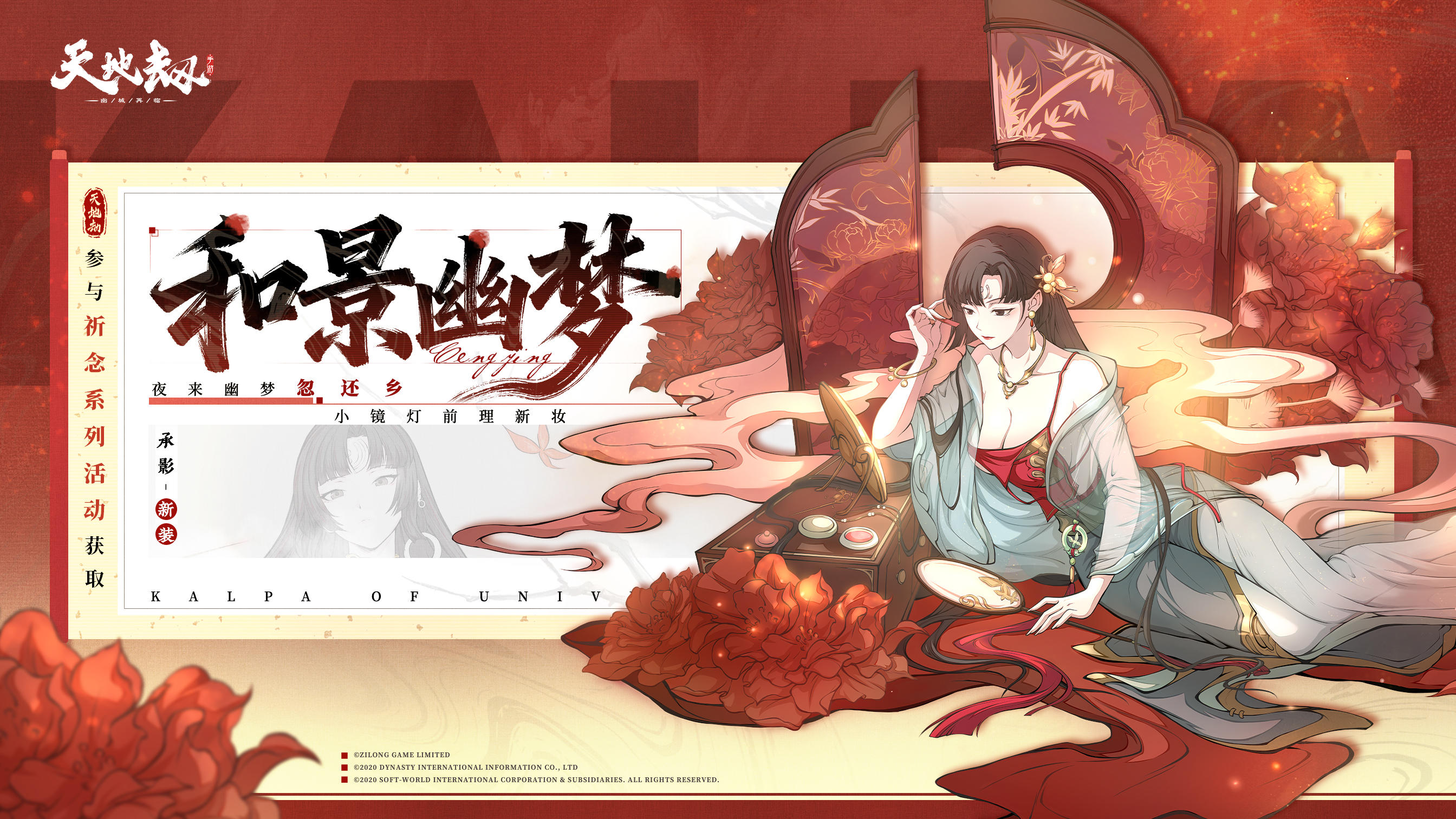 活动期间,消耗一定数量的蚀之晶即可参与「祈念之轮」活动,参与活动有机会赢得承影祈念时装「和景幽梦」、净魂材料、七仞石、灵蕴石、随机绝品饰品、随机绝品魂石等丰厚奖励!