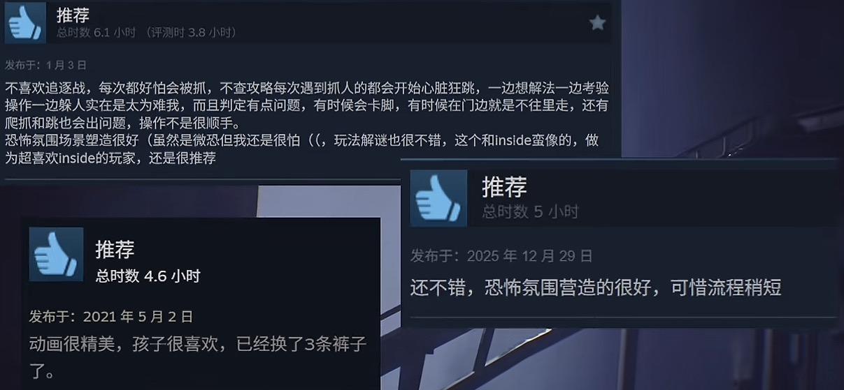 玩家的评价都很一致,恐怖氛围营造的很好,让人心跳加速。