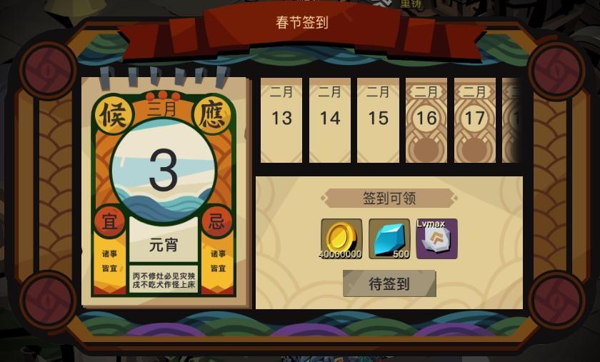 新春佳节,宜探险,宜领奖! 活动期间(正式服2月11日-3月4日),冒险家每日登录即可领取“老黄历”签到奖励。
