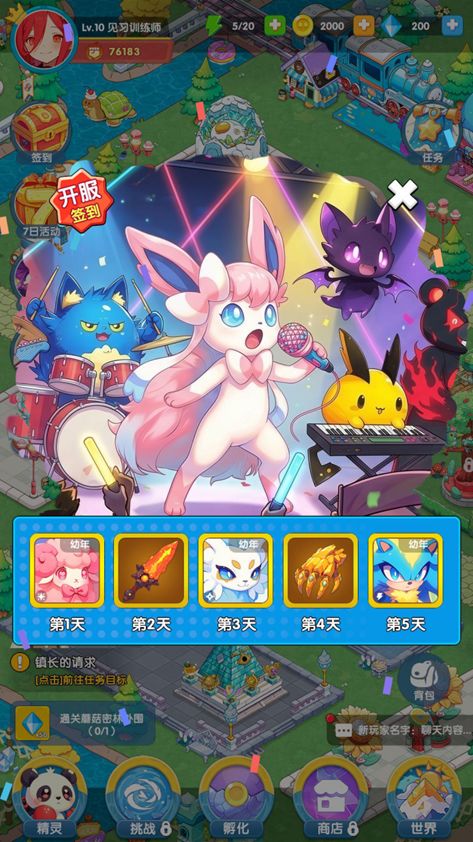 每日签到送“金”灵:连续登录可领取金色品质精灵,包括治疗系【甜心咩】、暴击系【刀刀烈火】、防御系【雷欧】等强力伙伴;