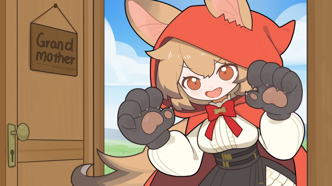 为了交到更多的好朋友,戌时伪装成乖巧的小红帽,穿上了红色的斗篷。这位「凶猛」的犬娘把大耳朵藏进红帽子,结果耳朵太有精神,一下子就弹出来了。她又试图藏起毛绒绒的尾巴,可尾巴摇的太欢,根本藏不住。她伸出软软的肉垫,敲响了木门——