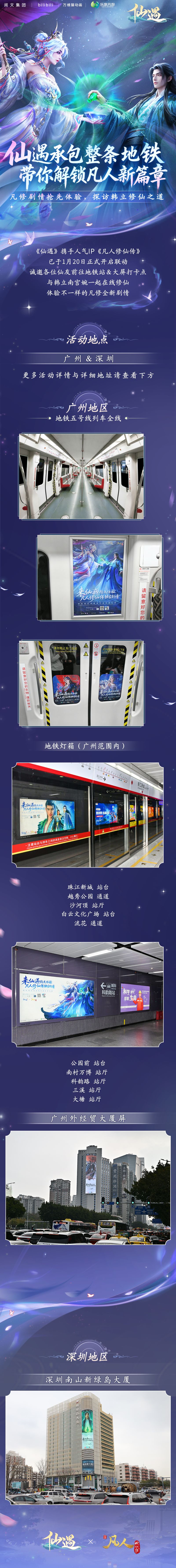 周年福利远远不止于此!《仙遇》直接包下广州整条地铁与广深户外大屏,不仅是为了在《仙遇》周年庆为各位仙友送上最有豪迈、最真挚的祝福:感谢陪伴,大道路遥,我们继续快意修仙!