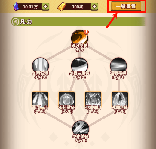 已经选择其他职业的魔王大人想重新选择光剑职业时也不要惊慌,也可以在人物的技能界面点击一键重置按钮重新选择自己想要的职业,并可返还以点技能的全额资源,只需要付出一点小小的代价(20金砖)。