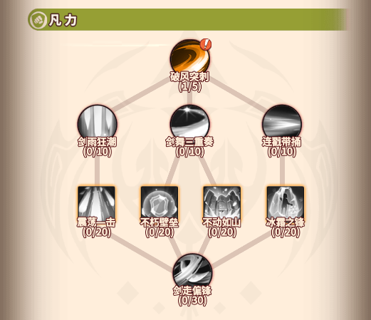 将破风突刺技能点满可选择三大分支技能剑雨狂潮、剑舞三重奏、连戳带捅中的一项进行学习,三大分支技能只能选择其一进行学习。