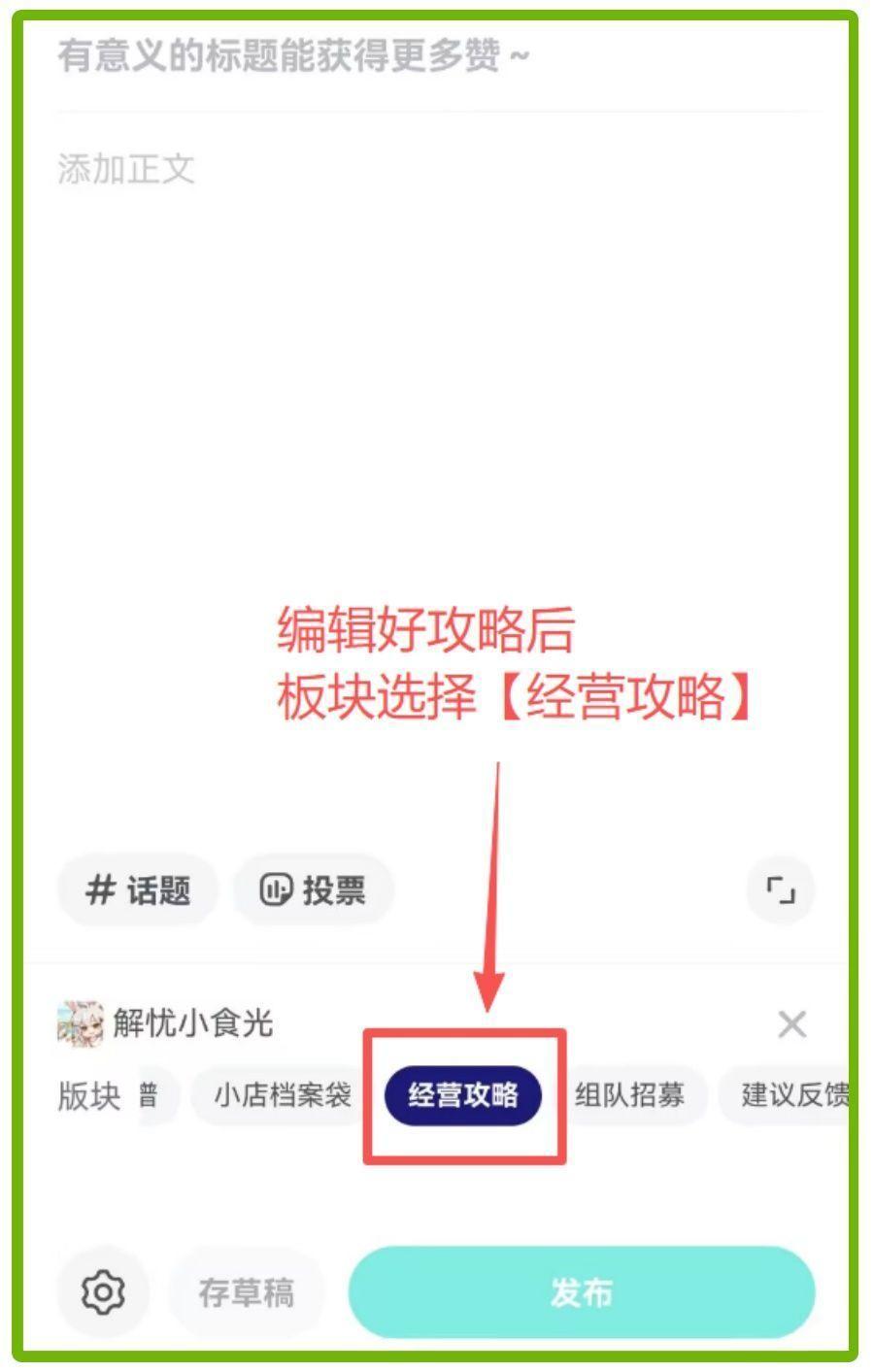 1)在论坛板块【经营攻略】中,发布《解忧小食光》相关攻略内容。