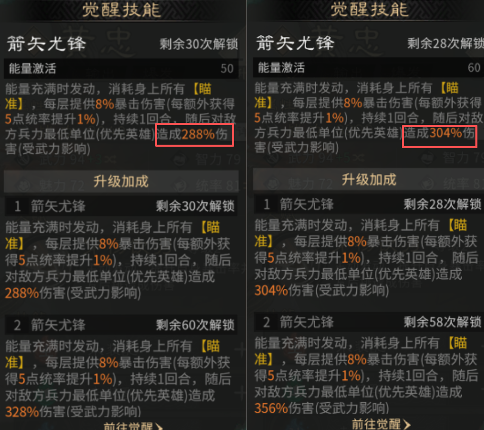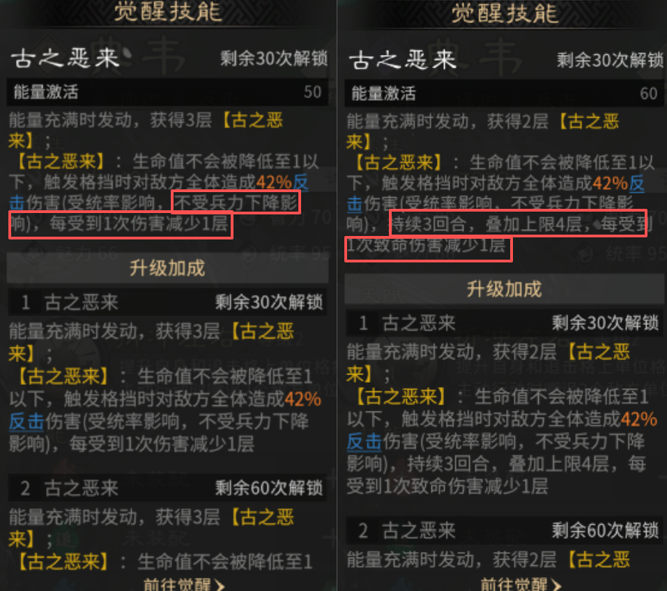 觉醒技能:左为【无双测试】,右为最新版本抖音【灵感内测】